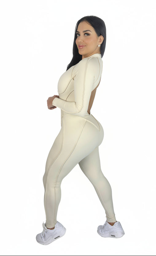The Sculpt Line Open Back Bodysuit is designed to shape, snatch, and serve — from every angle. This full-length one-piece hugs your curves with contour-seam detailing while keeping you supported. The dramatic open-back silhouette gives breathable freedom and a luxe, elevated edge. The front features a sleek half-zip closure so you can choose your vibe — zipped for performance, unzipped for a little flair.